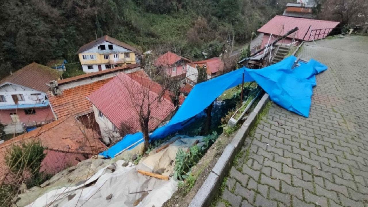 Heyelanın meydana geldiği bölge de branda ile kapatıldı.